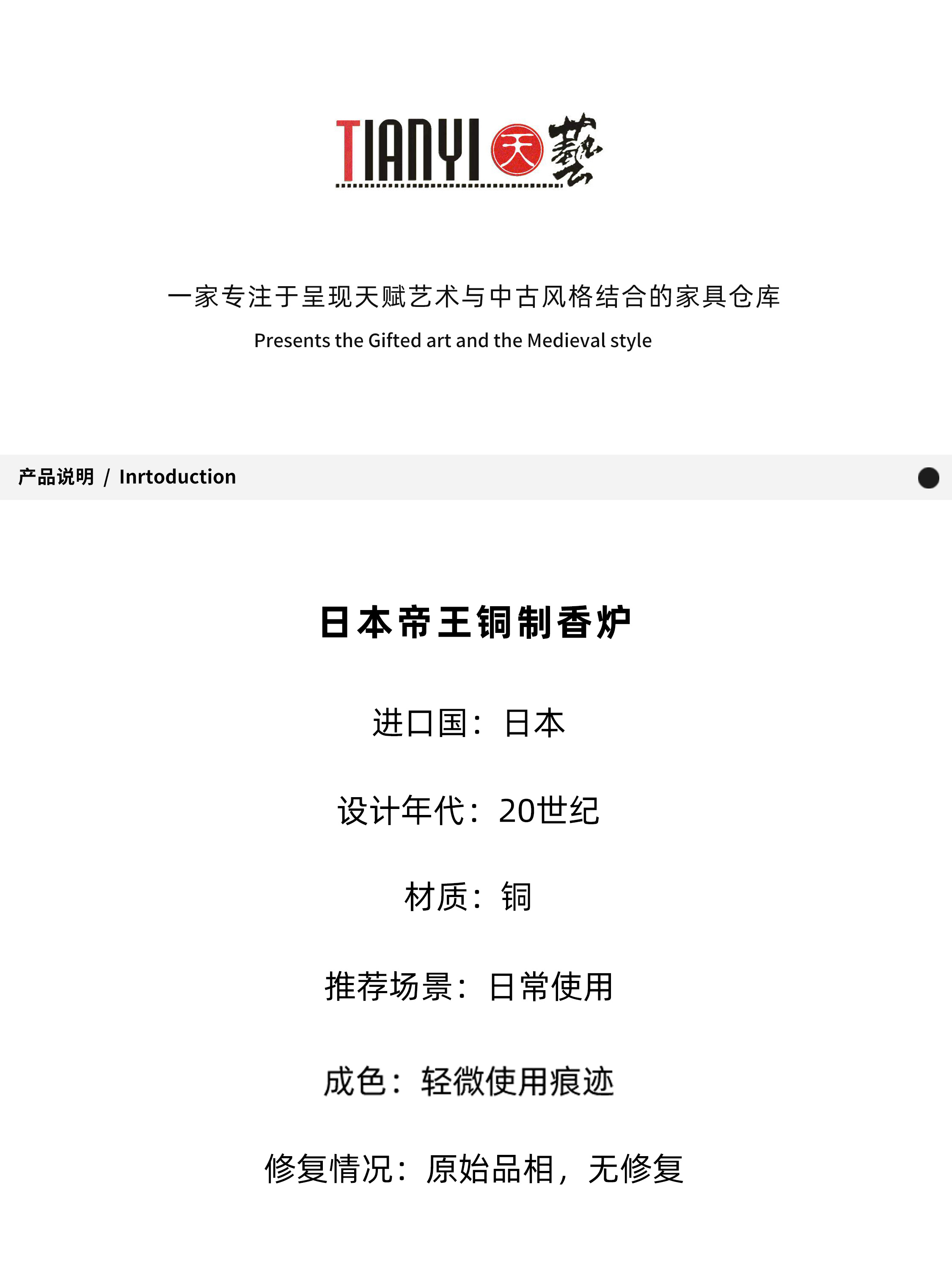 帝王铜制香炉18*29cm