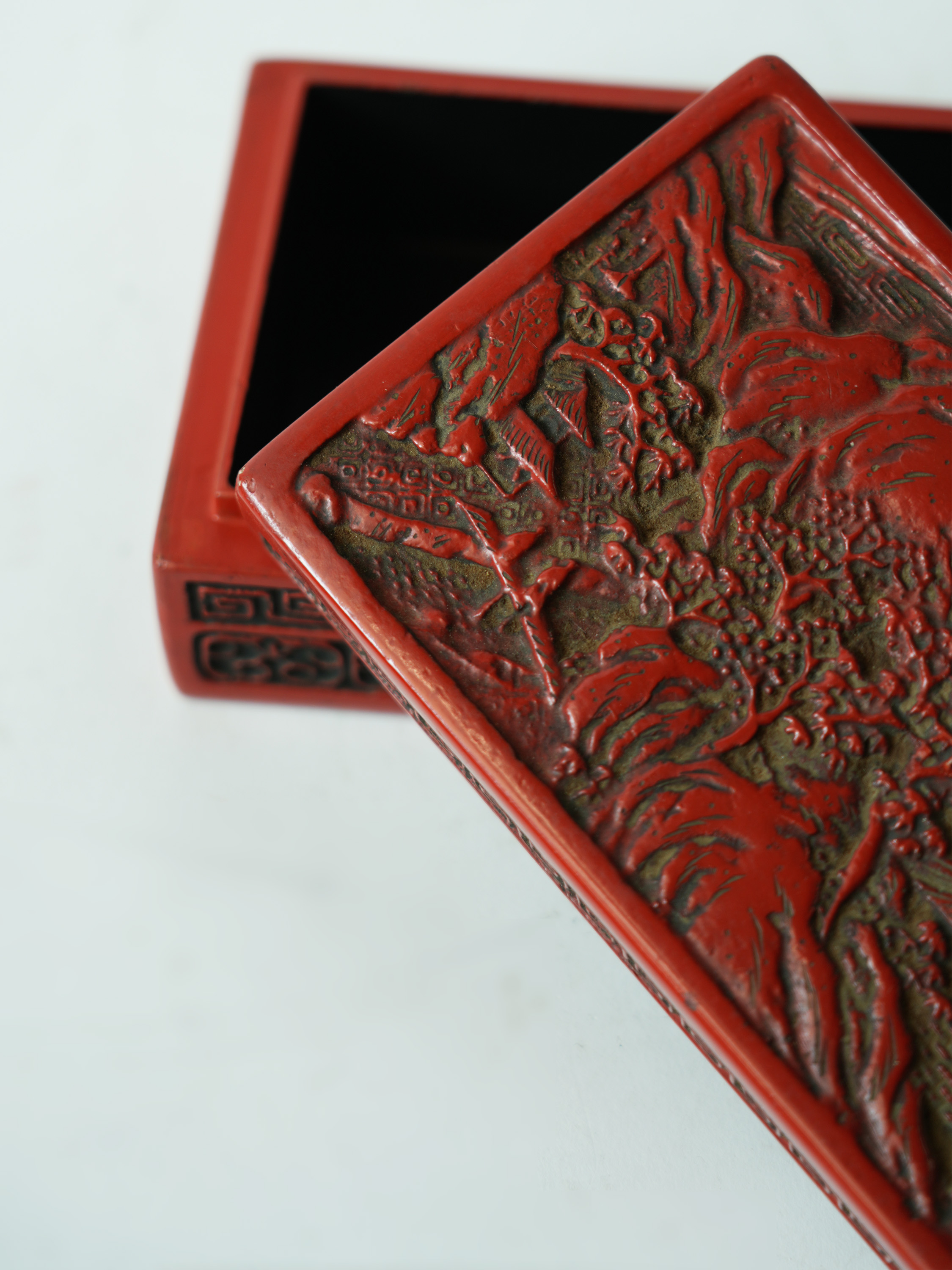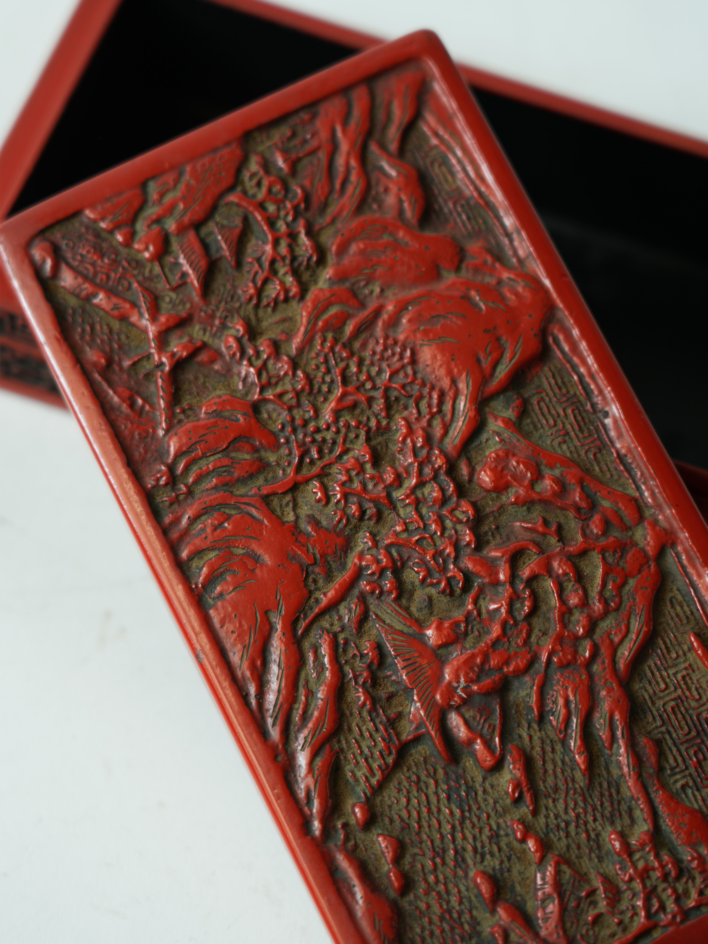 堆朱漆器浮雕盒18*9.5*5.5cm
