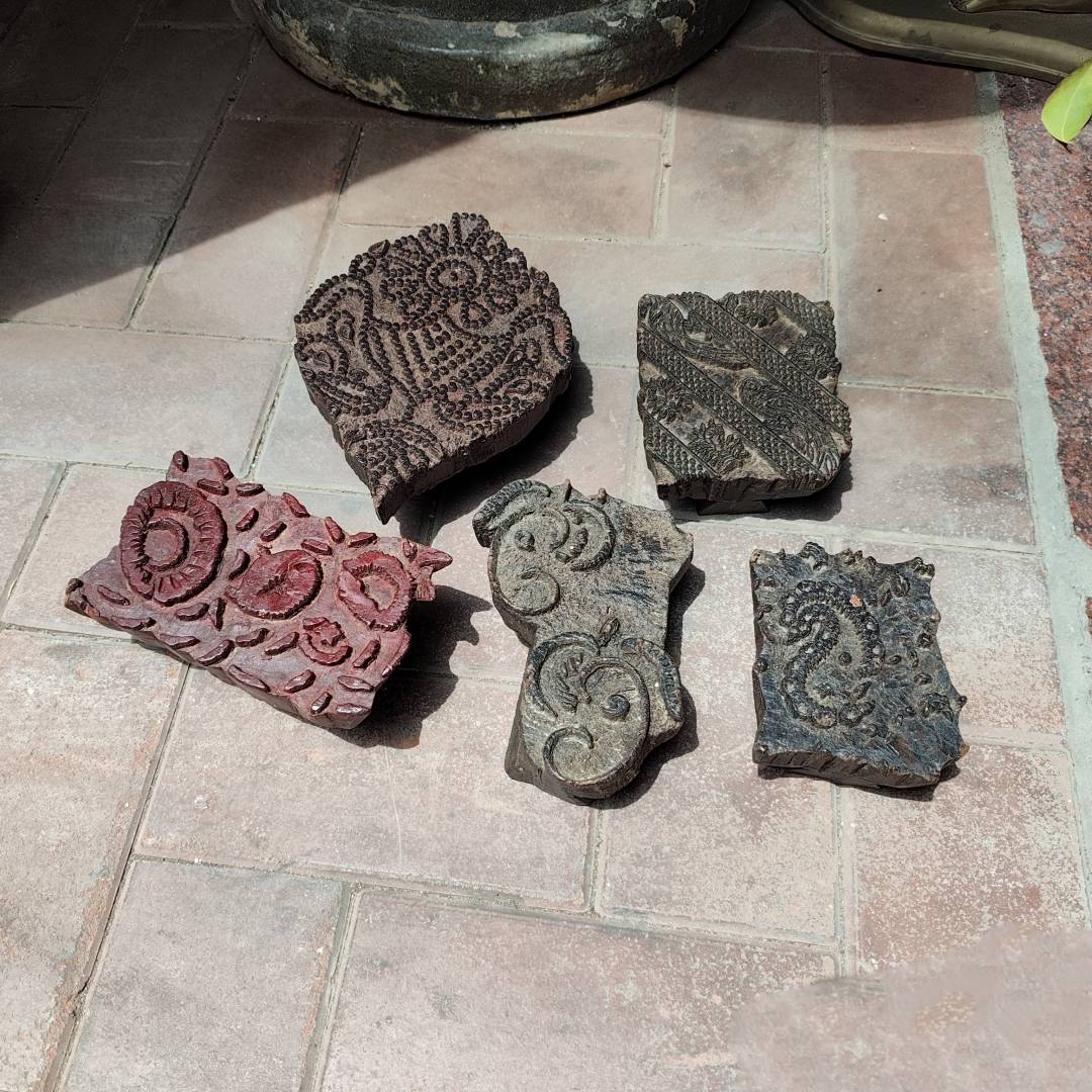 老木雕花印章拓印11-19*9-16*4.5-6.5cm
