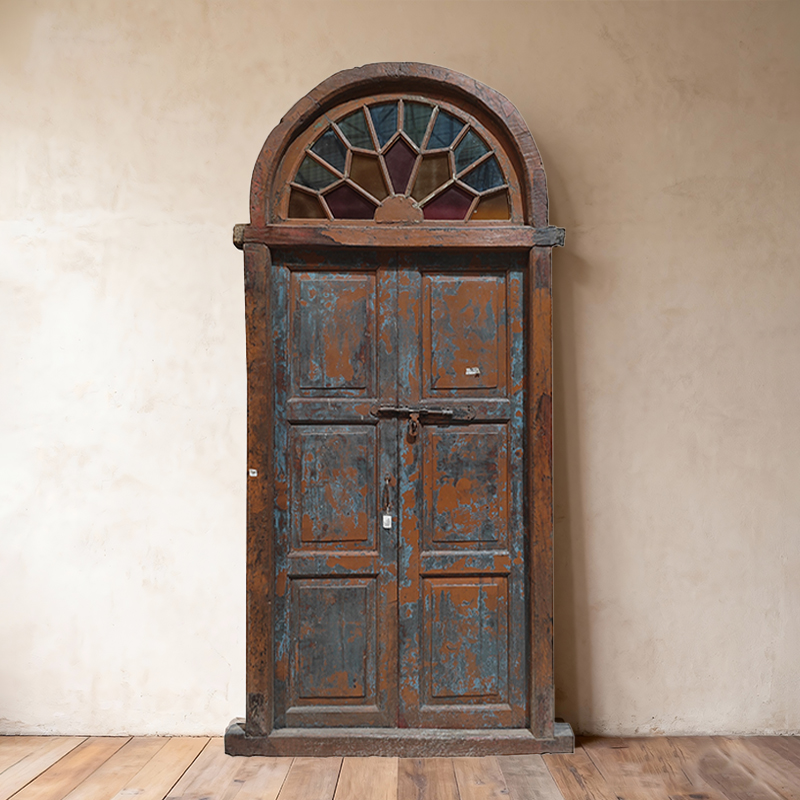 材质:实木辅料:铁+琉璃门外框长:123cm 厚:9.5cm 高:270.5cm 底部长:139cm门内框长:104cm 高:189cm