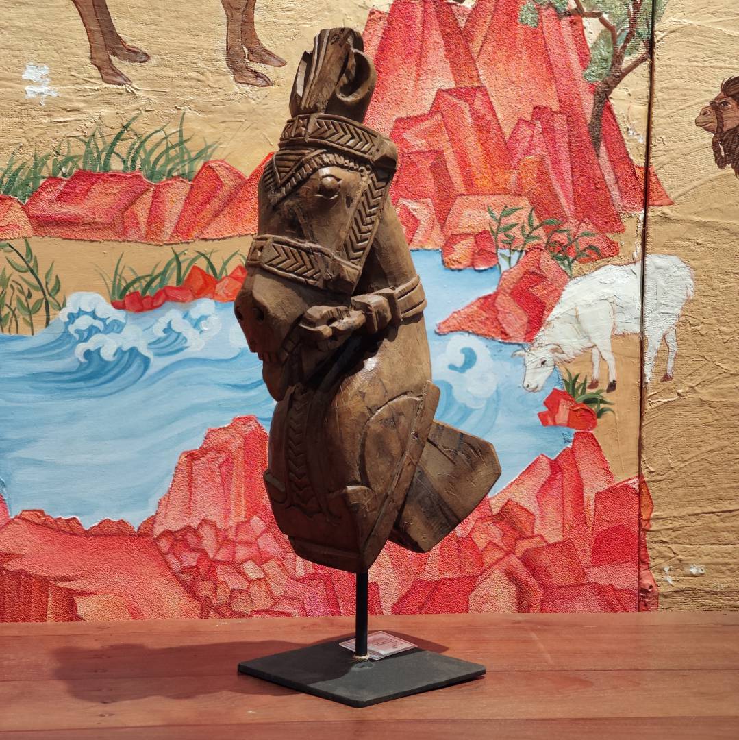 老木雕花马头摆件25*15*54cm
