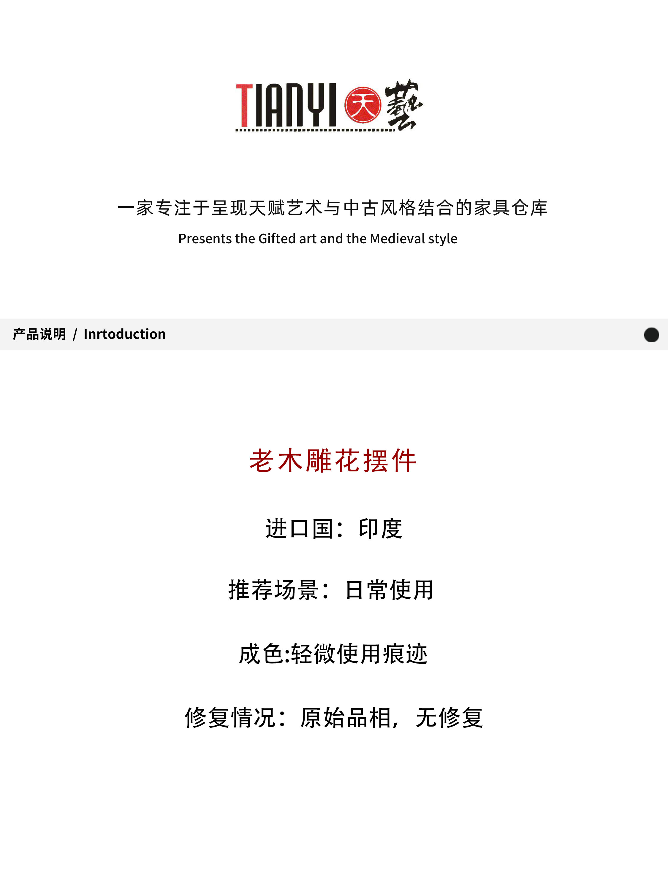 老木雕花摆件20*15*42cm