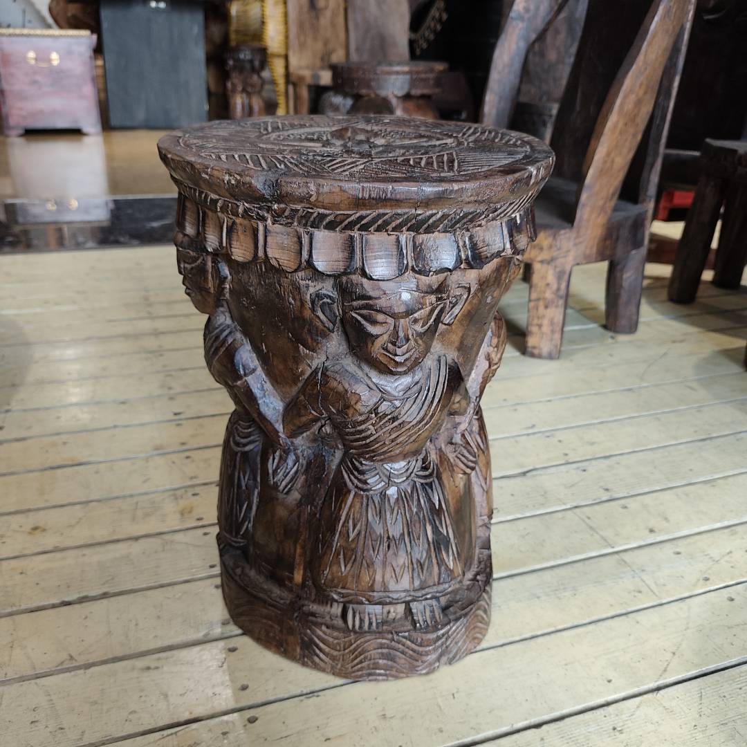 雕花底座人物摆件花盆植物花架32*30*44cm