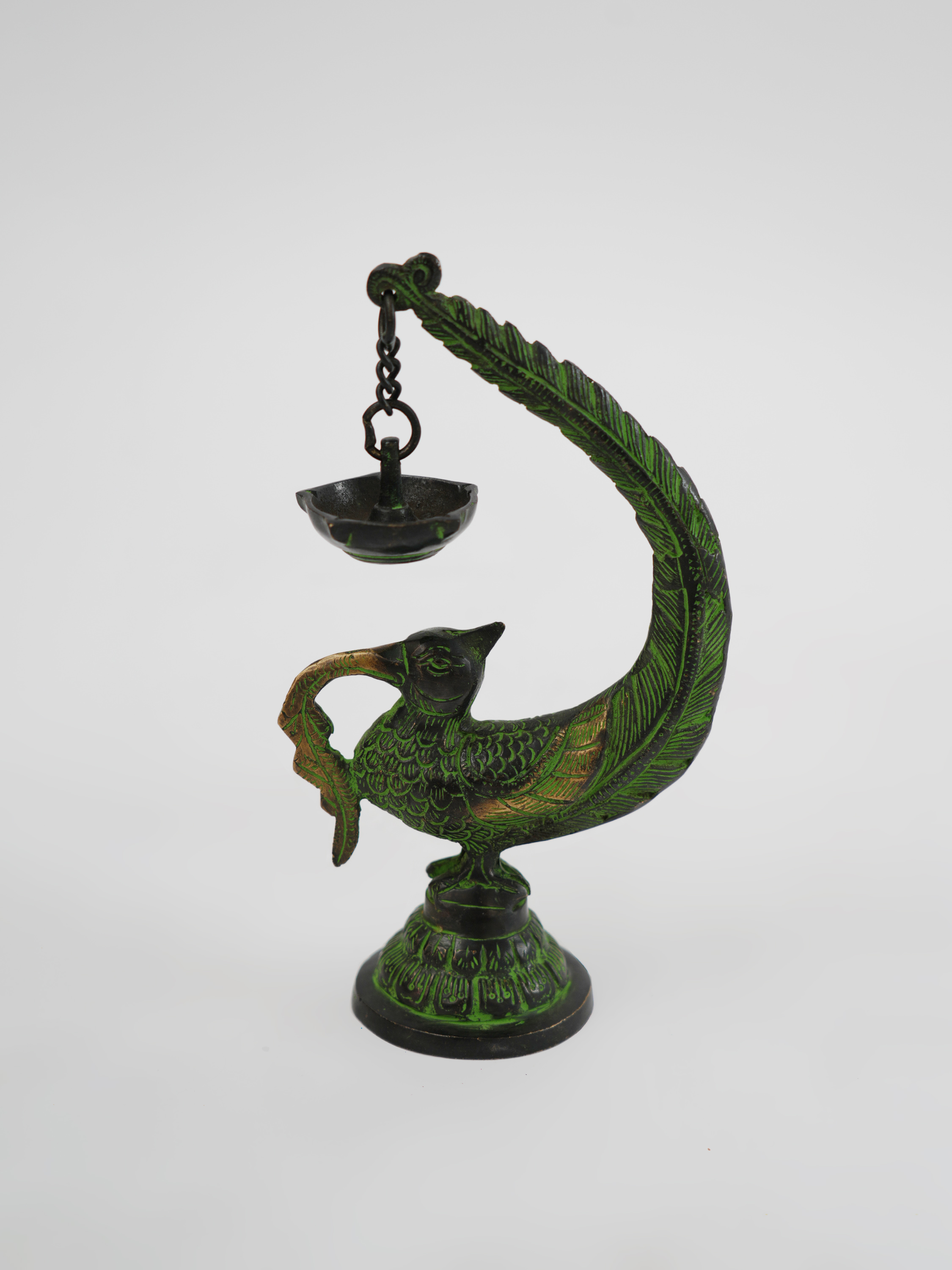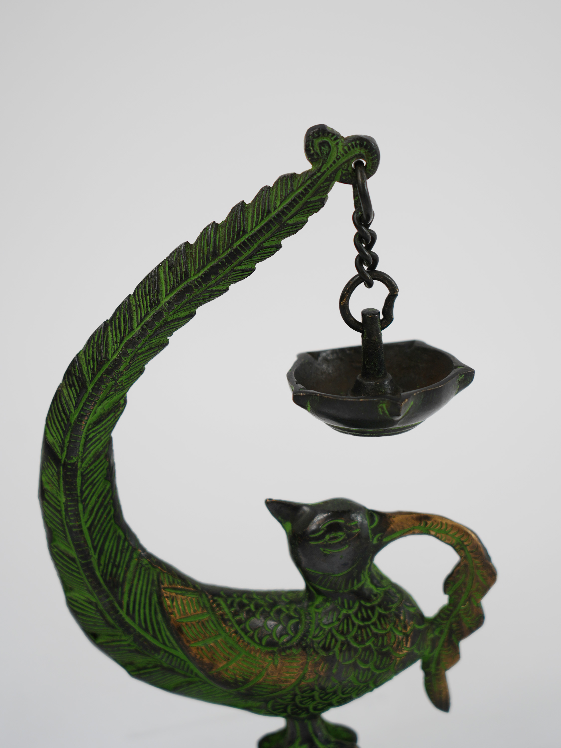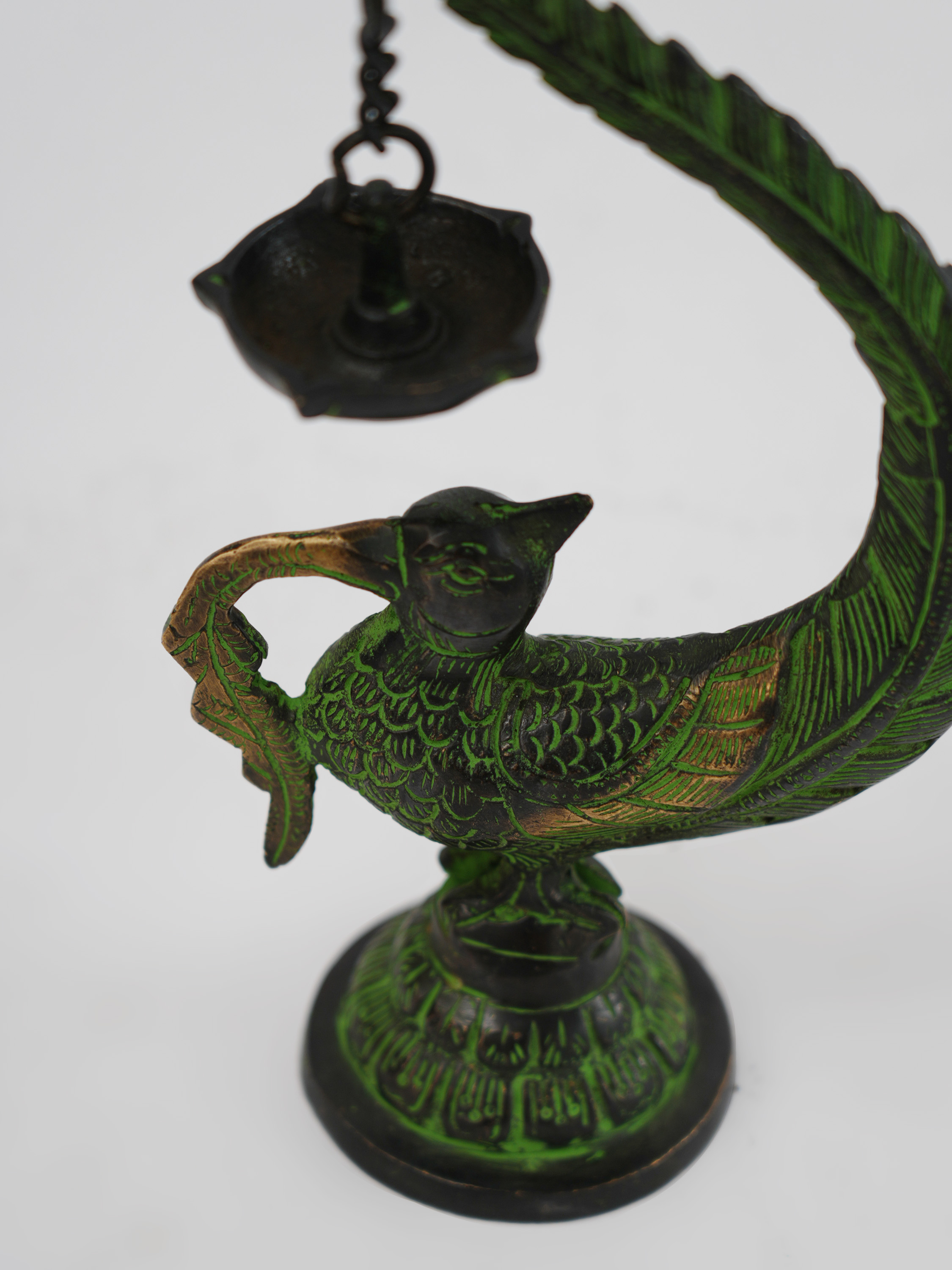 铜制孔雀油灯12*6.5*20.5cm