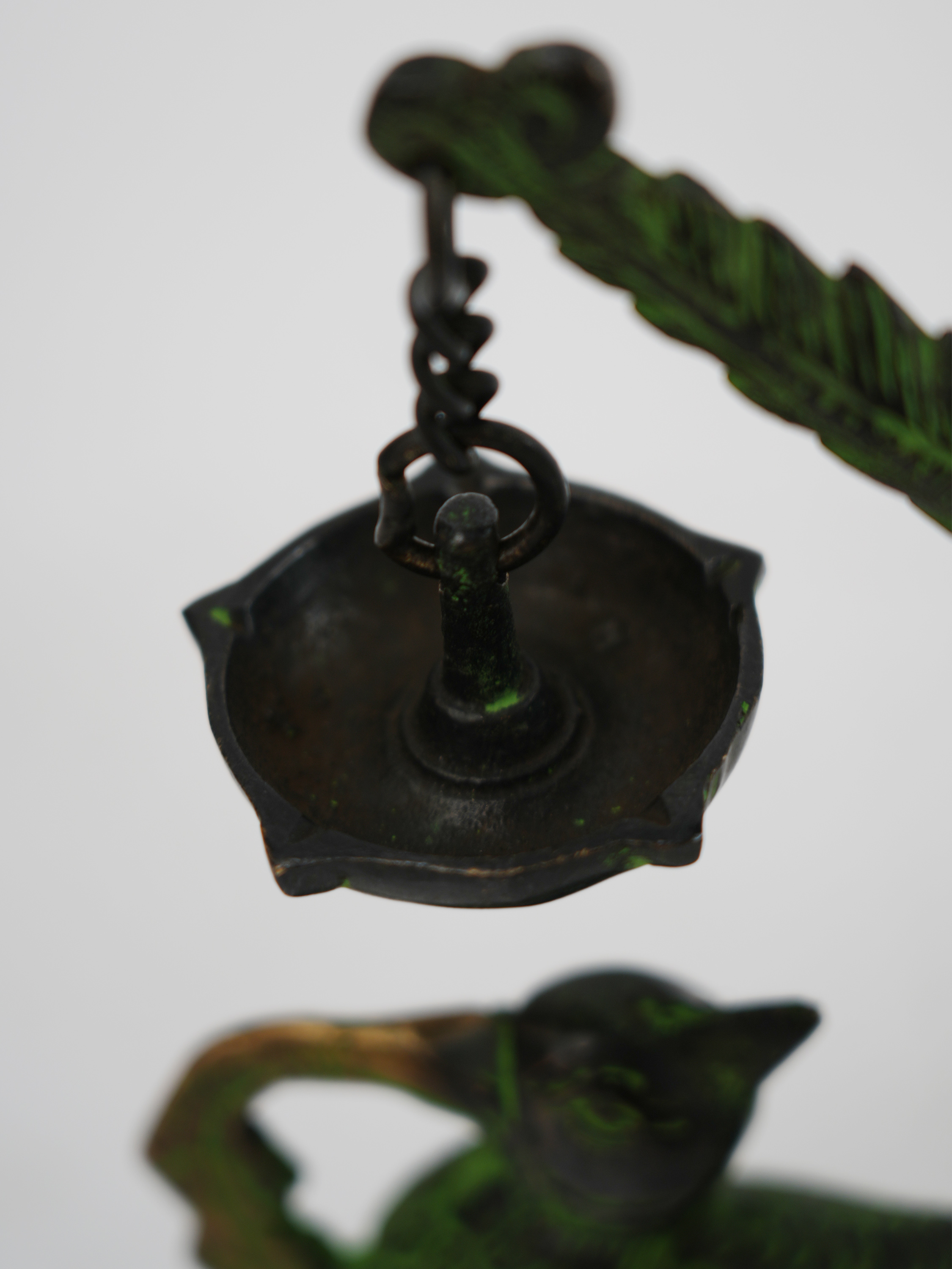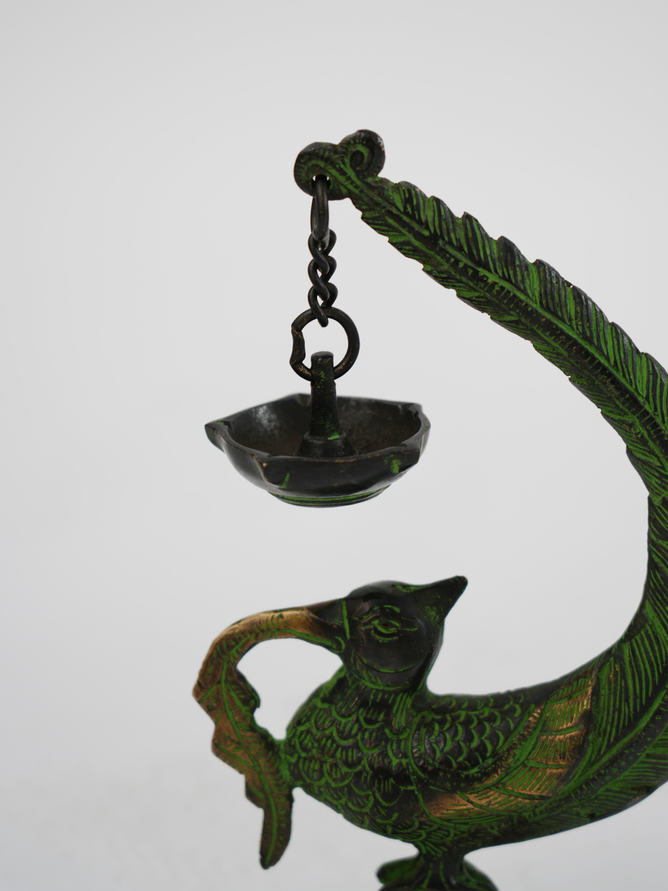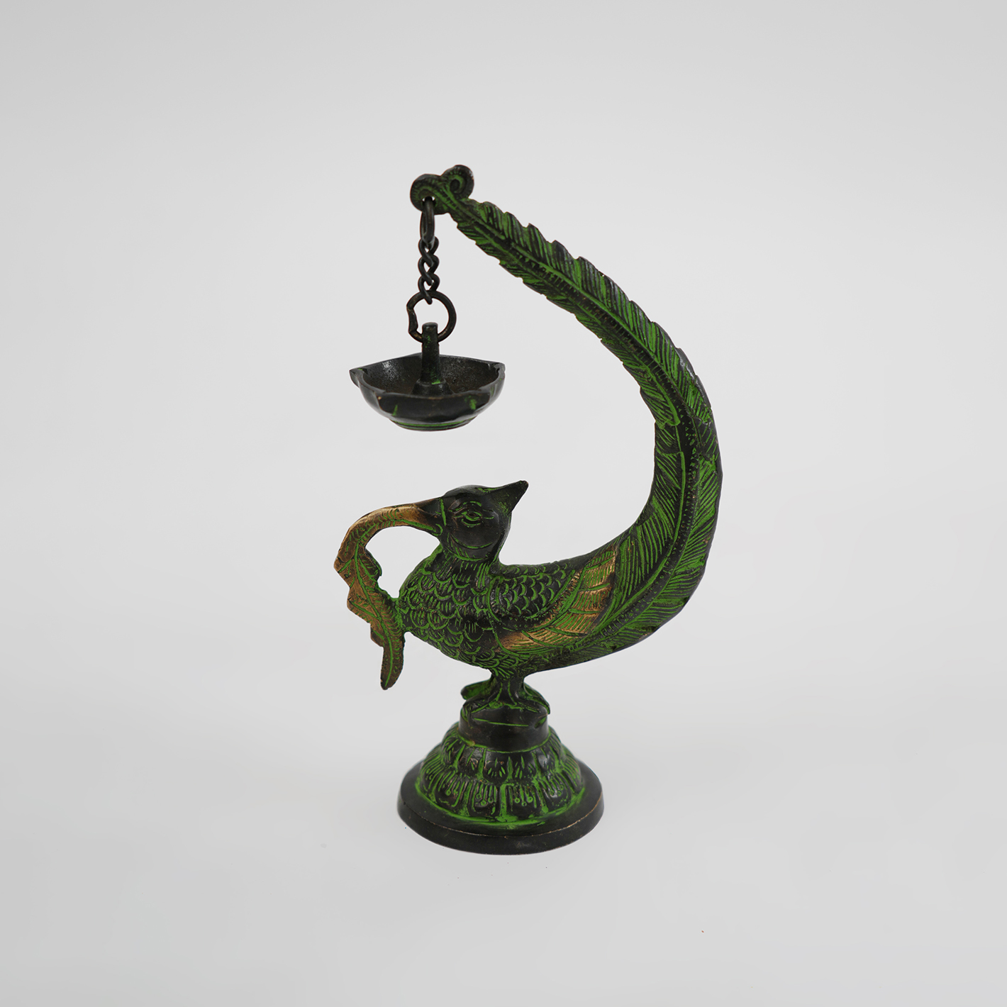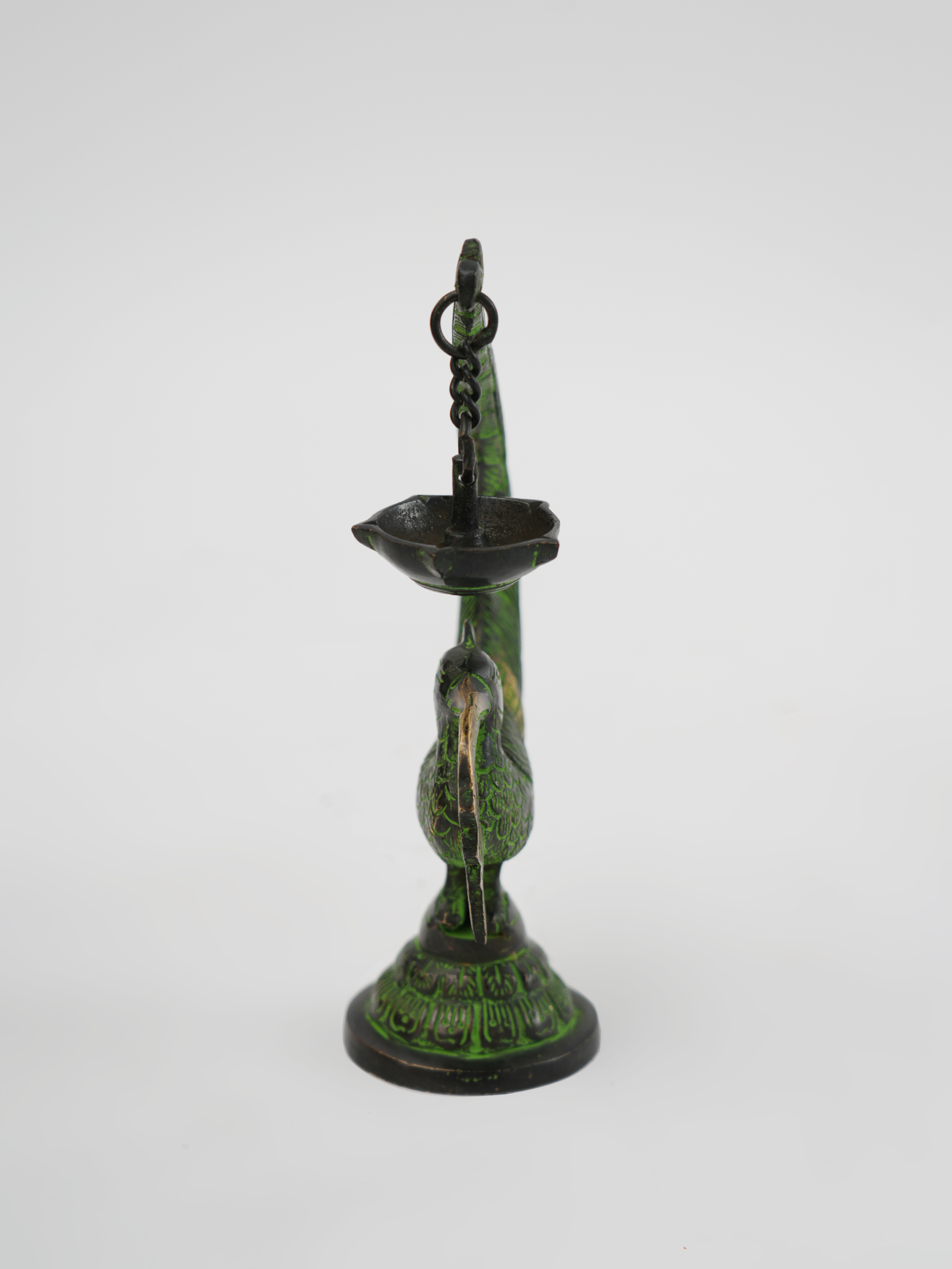 铜制孔雀油灯12*6.5*20.5cm