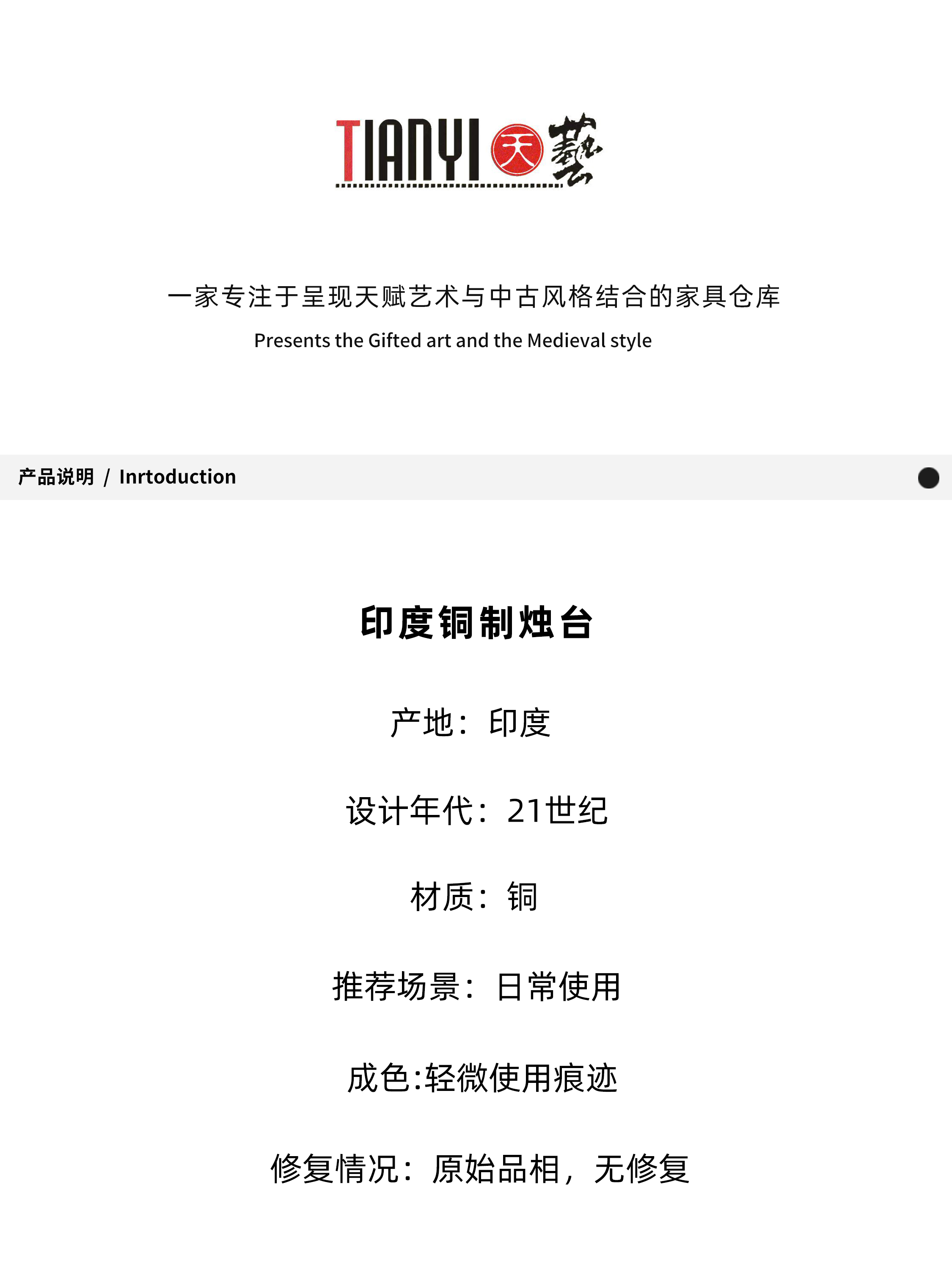 铜制烛台14*9.7*23.5cm