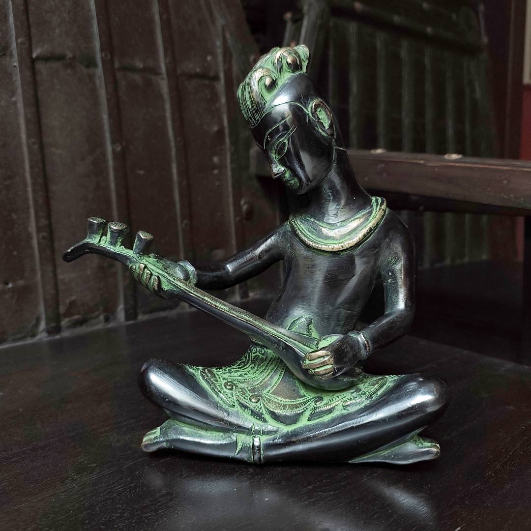 铜制音乐人摆件-弹西塔尔的人21*9*23.2cm