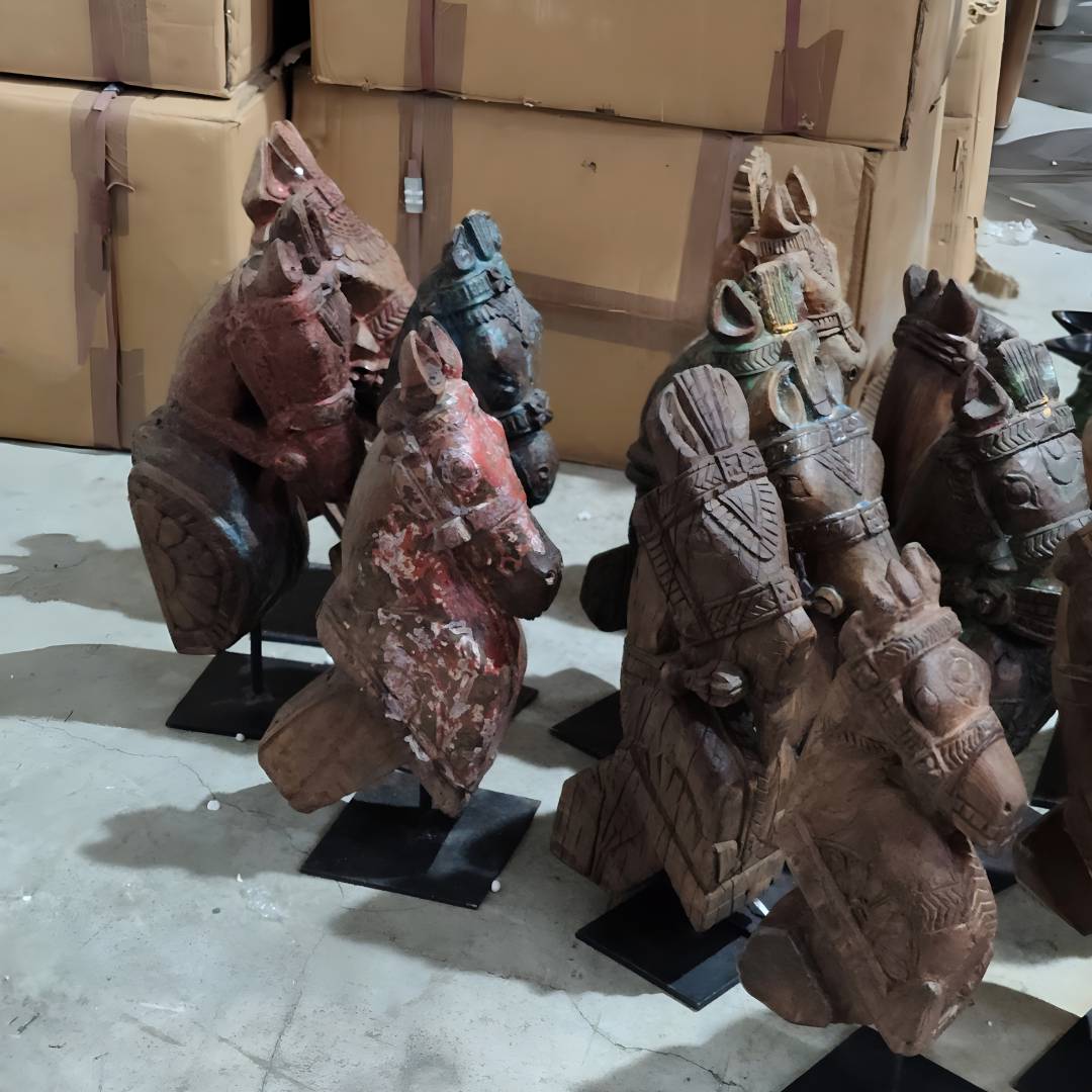 老木雕花马头摆件15-22*12.5-17*40-53cm