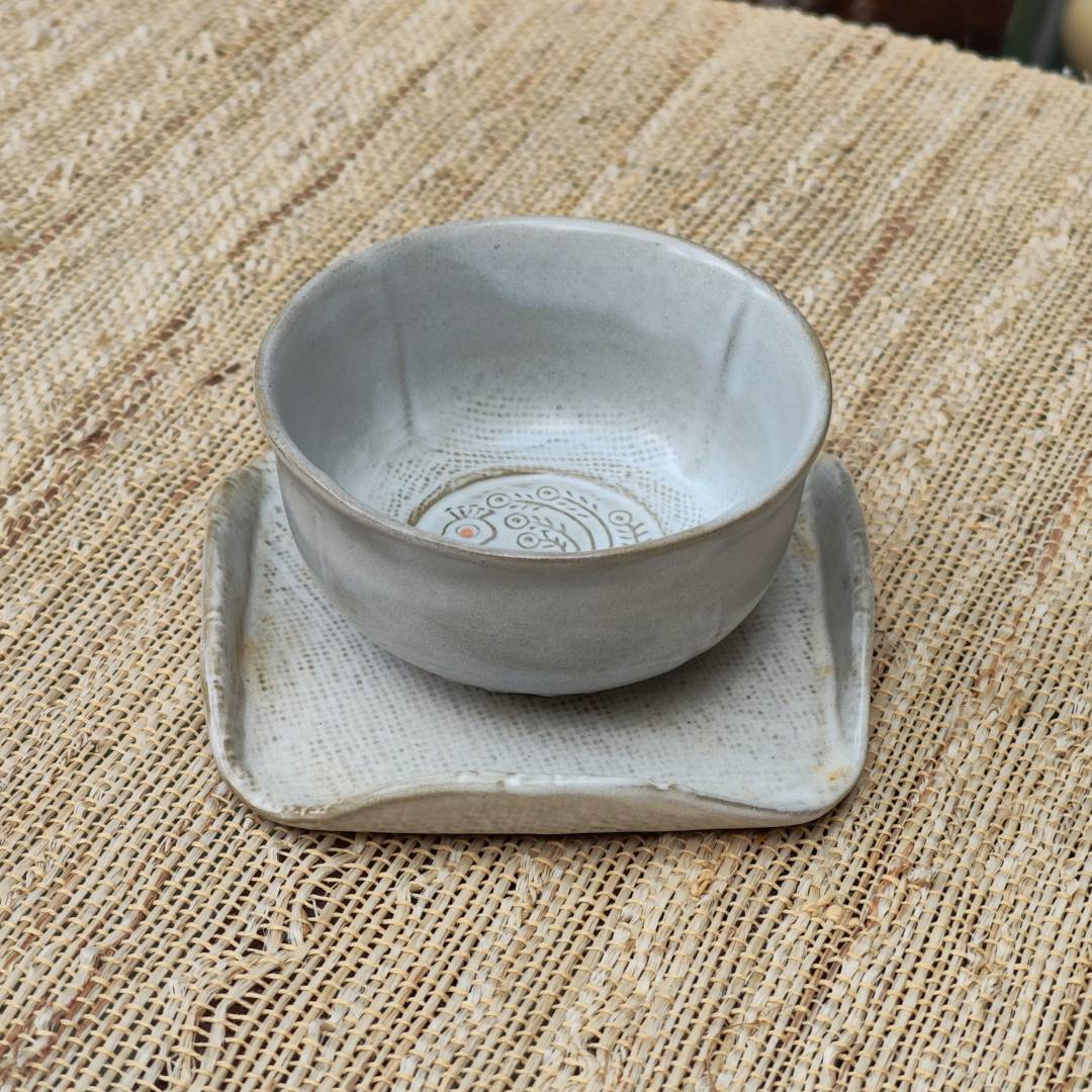 雅峰窑粗陶茶杯(两件套)