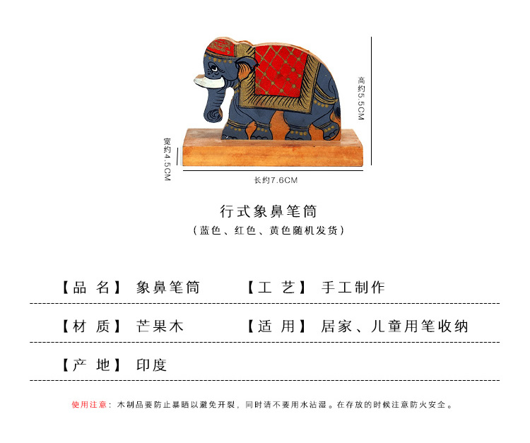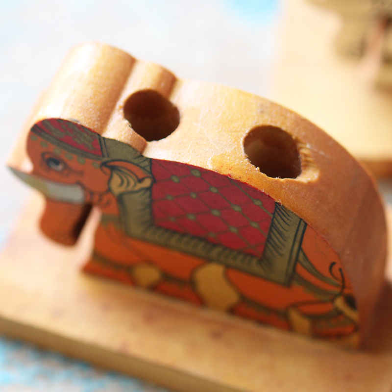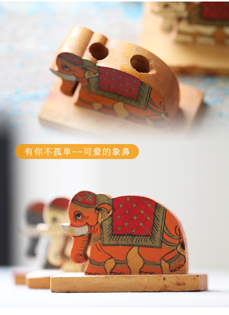 手工彩绘儿童卡通象鼻笔筒学生艺术礼物创意时尚立式木质书桌摆件