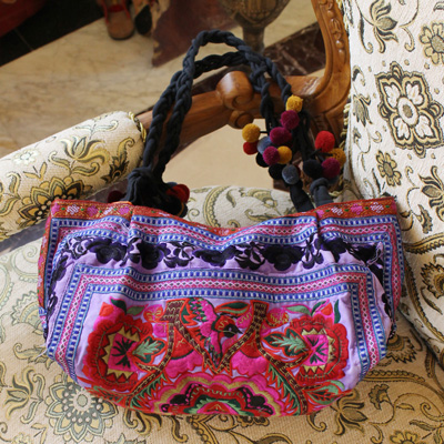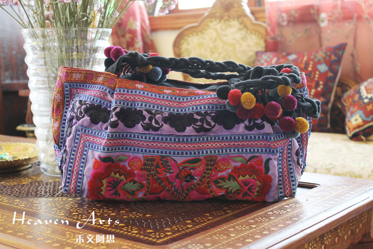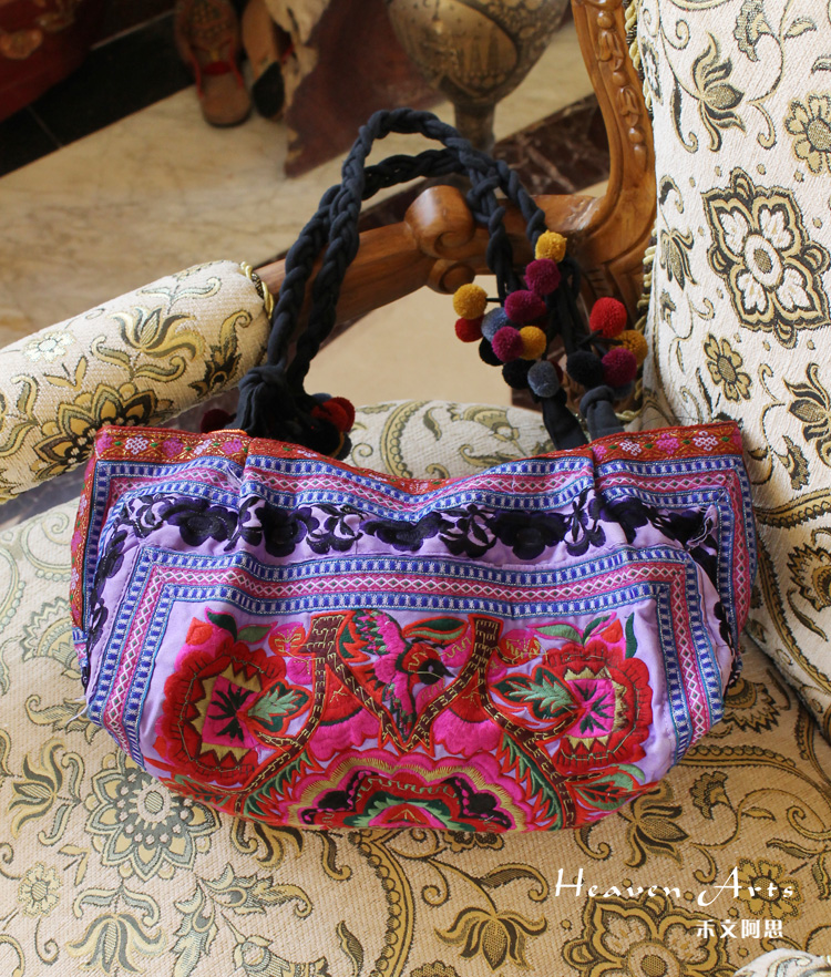 手工绣花真皮手提挎包38.5*44cm