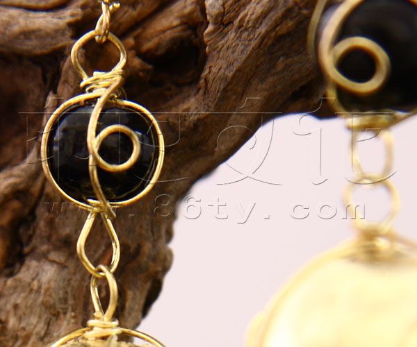 三色铜编花耳环
