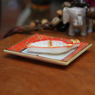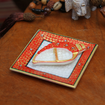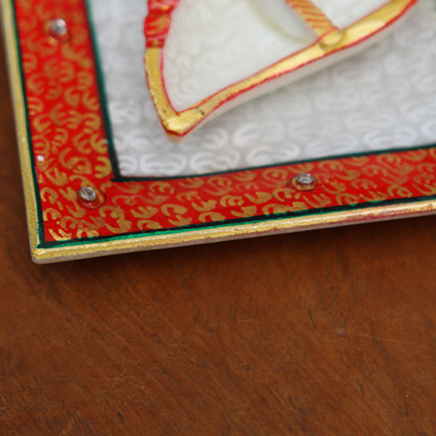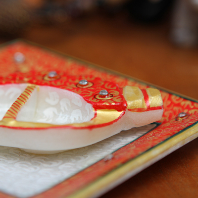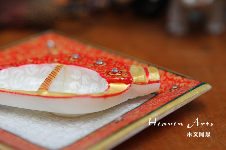 汉白玉彩绘摆件9.7*9.2*2.2cm