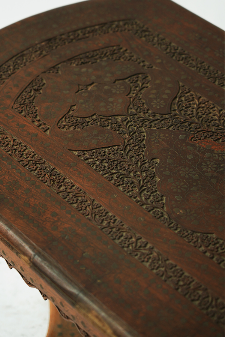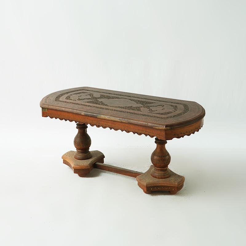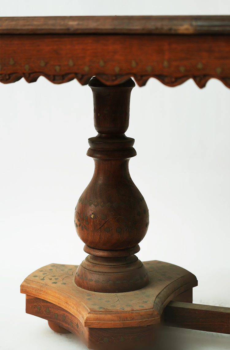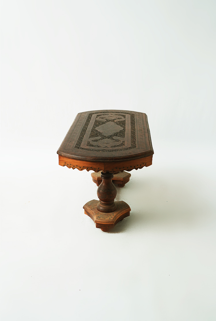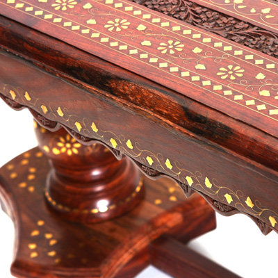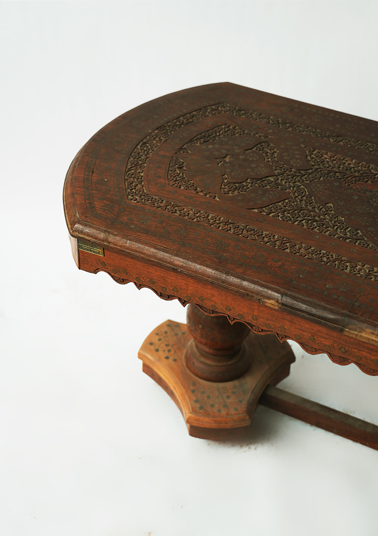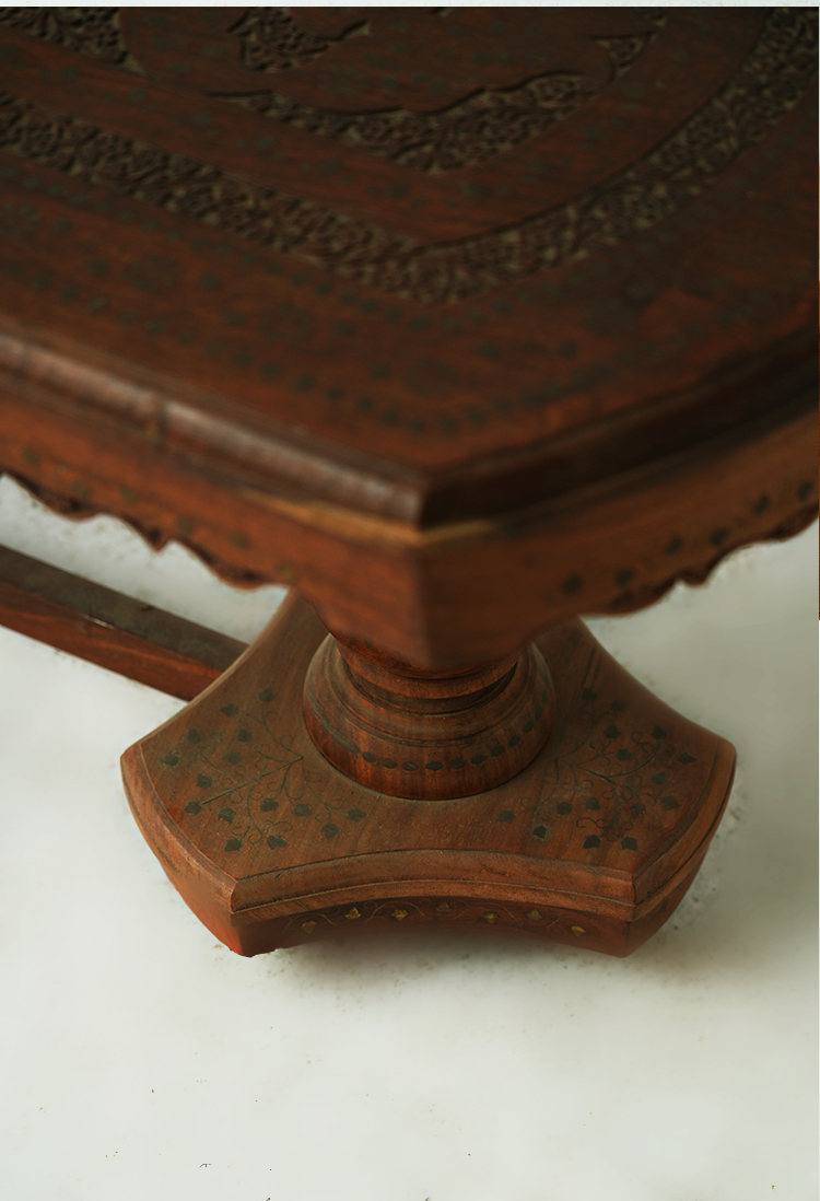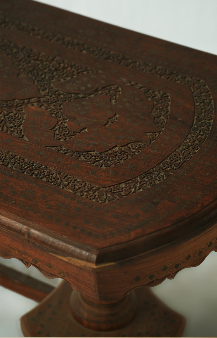 桌子的设计部不仅要美观还要实用,要拥有赏析悦目的精致外表,还要拥有坚固充实的内在。禾文阿思的这款桌子,采用酸枝木制作而成,实木的家具总能带给人安心可靠的感觉。秉承一贯的仿古特色,在桌面上雕刻精致的图案,镶嵌华丽的铜片,使整张桌子越发高贵大气。