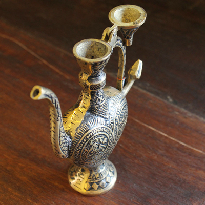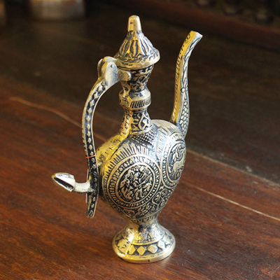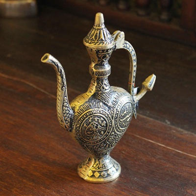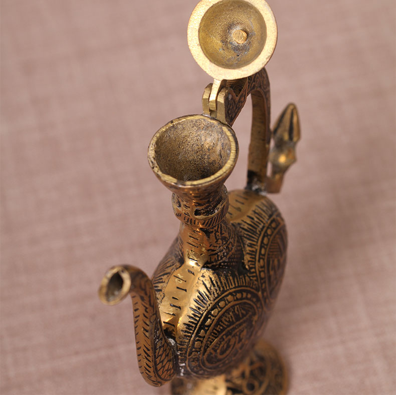 阿拉丁神灯是著名阿拉伯故事集《一千零一夜》中比较出名的一个。它包罗了各种各样的精彩故事,荟粹了阿拉伯世界民间故事精华,是规模最大的阿拉伯民间故事集。包括寓言、童话、冒险、爱情、名人轶事等各类故事。因其想象丰富、描写生动、故事曲折而风靡全世界。传说阿拉丁神灯中住着一个灯神,但是在数百年中却再没人能够找到他,据说这是因为如今的阿拉丁神灯数量过于庞大,而灯神自从被阿拉丁许愿自由之后就居无定所,经常更换所栖息的神灯。因此在阿拉伯的人们,很多人家中都有这样的一盏神灯,以期待某天灯神能够住到他们家去。阿拉丁神灯除了作为灯神的住所外,还可以当做油灯使用。它的使用方法与中国的油灯类似,需要先在壶中倒上灯油,然后再在壶嘴插入灯芯并点上火就可以使用了。使用注意:在存放铜制品的时候,请注意保持室内的干燥和空气的清洁,定期清扫表面的灰尘污垢,避免沾水。