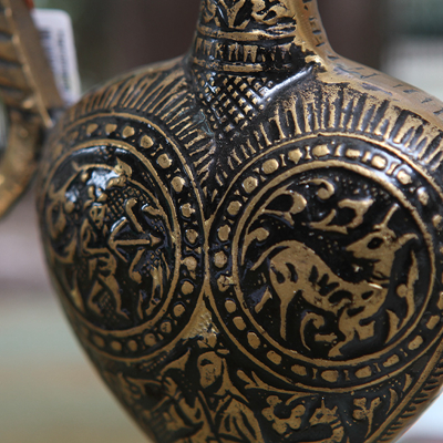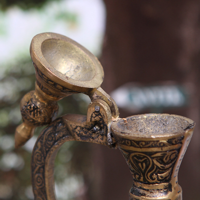 阿拉丁神灯是著名阿拉伯故事集《一千零一夜》中比较出名的一个。它包罗了各种各样的精彩故事,荟粹了阿拉伯世界民间故事精华,是规模最大的阿拉伯民间故事集。包括寓言、童话、冒险、爱情、名人轶事等各类故事。因其想象丰富、描写生动、故事曲折而风靡全世界。传说阿拉丁神灯中住着一个灯神,但是在数百年中却再没人能够找到他,据说这是因为如今的阿拉丁神灯数量过于庞大,而灯神自从被阿拉丁许愿自由之后就居无定所,经常更换所栖息的神灯。因此在阿拉伯的人们,很多人家中都有这样的一盏神灯,以期待某天灯神能够住到他们家去。阿拉丁神灯除了作为灯神的住所外,还可以当做油灯使用。它的使用方法与中国的油灯类似,需要先在壶中倒上灯油,然后再在壶嘴插入灯芯并点上火就可以使用了。使用注意:在存放铜制品的时候,请注意保持室内的干燥和空气的清洁,定期清扫表面的灰尘污垢,避免沾水。