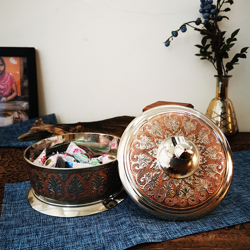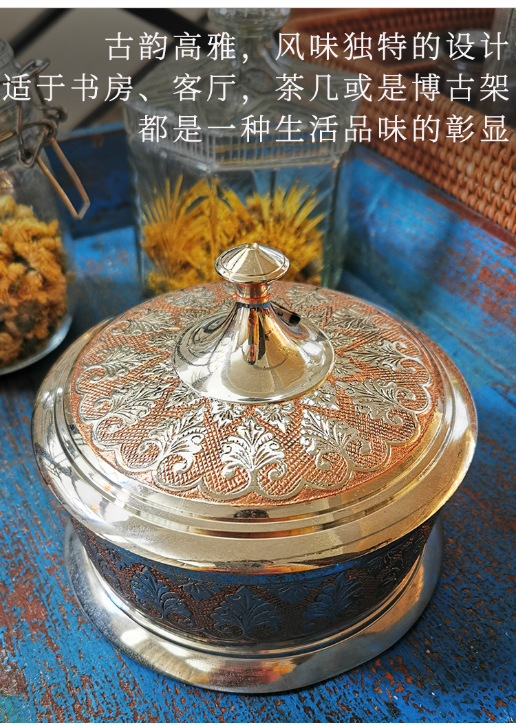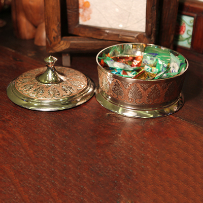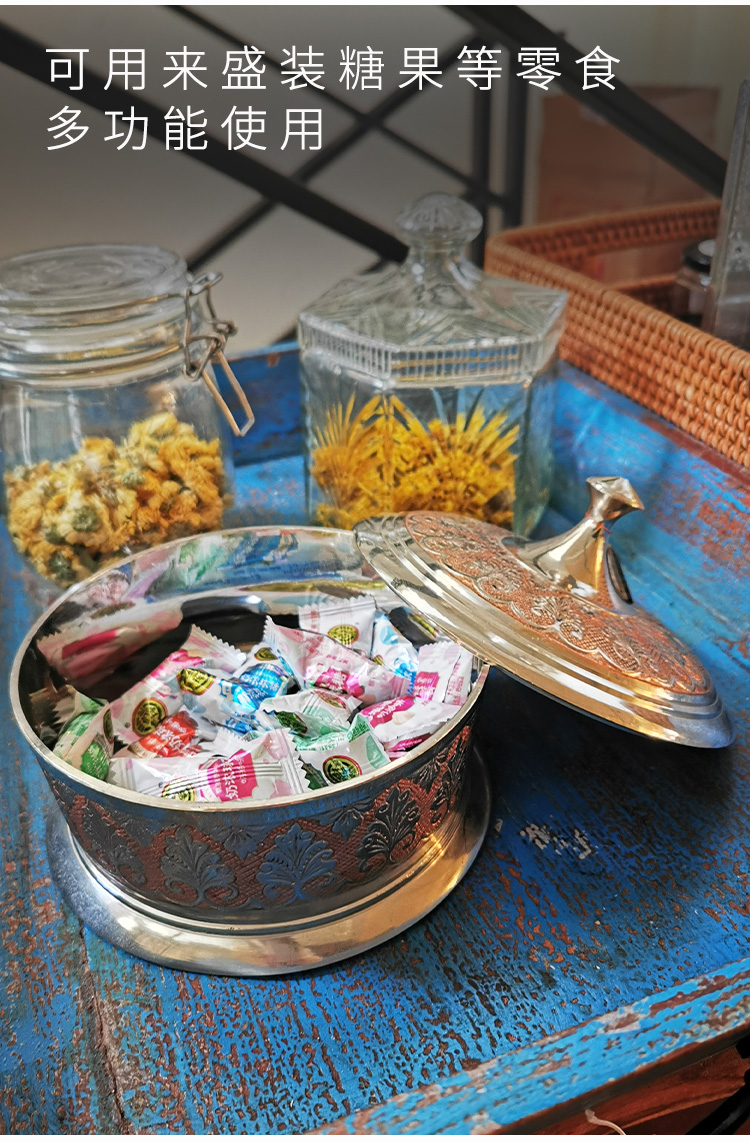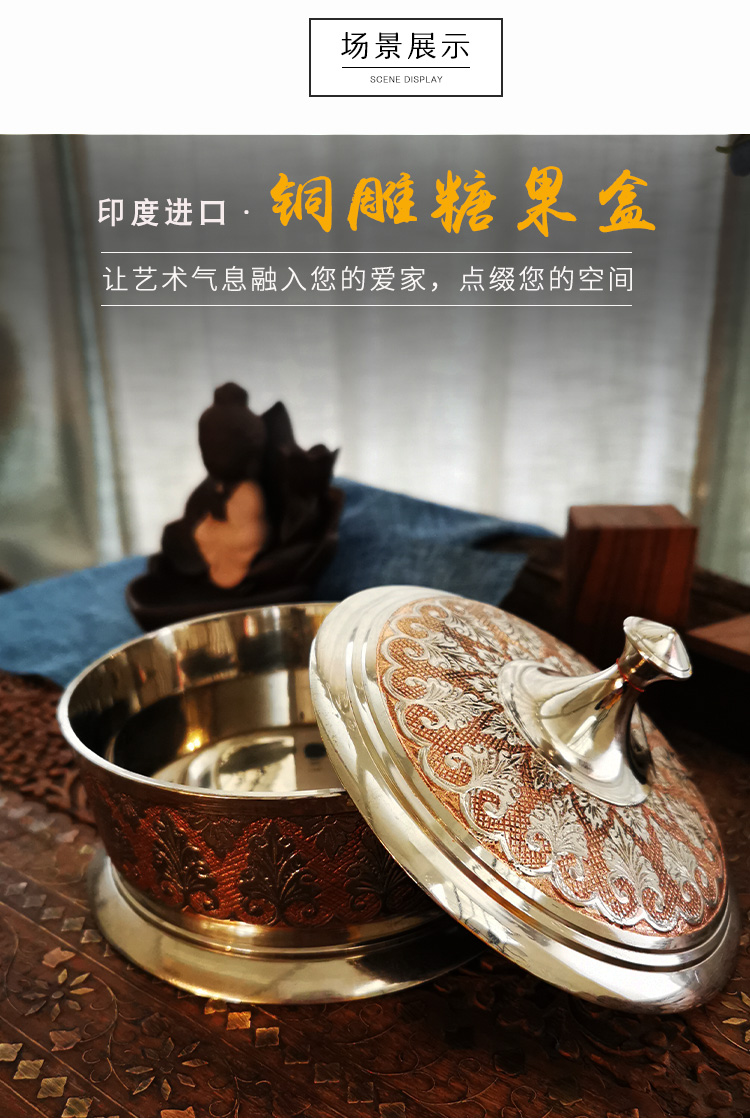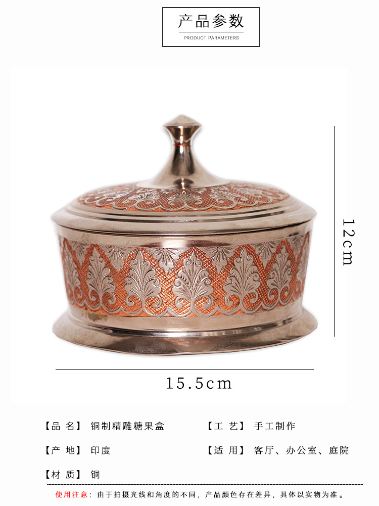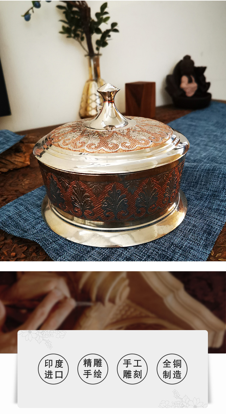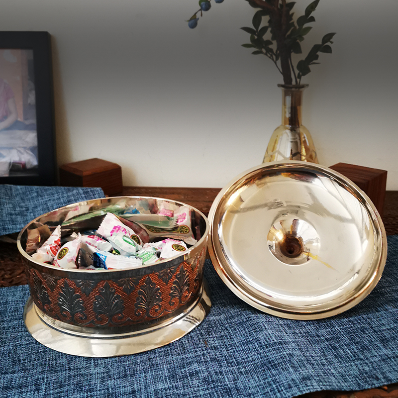 白铜手工精雕糖果干果盒*14.8*12.5cm