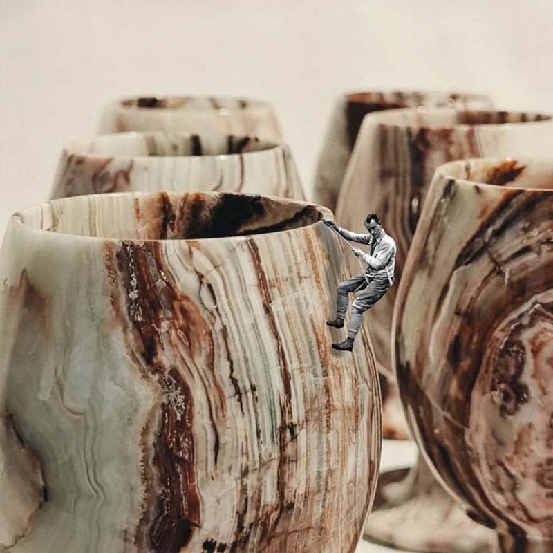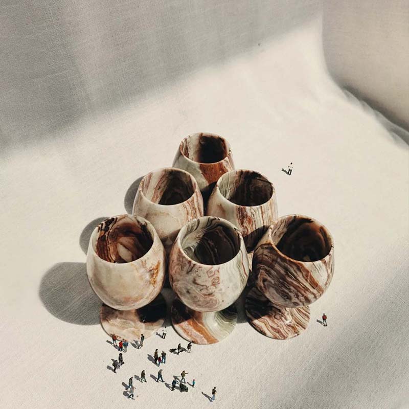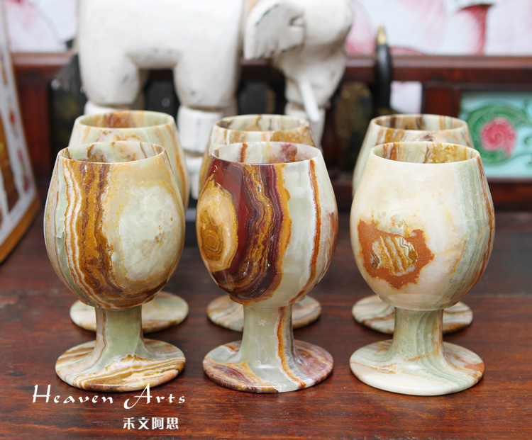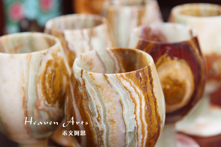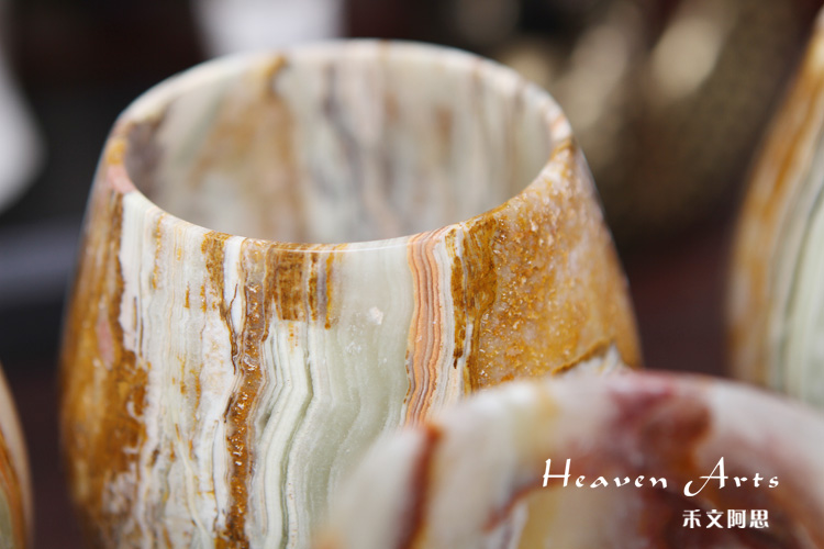 兰陵美酒郁金香,玉碗盛来琥珀光。虽然没有玉碗琥珀光,但这款大理石的杯子用来品酒也别有一番高雅的韵味。大理石杯子白色带黄的花纹,可以形成一副天然的水墨山水画,搭配香醇的美酒,悠然的雅韵自然天成。